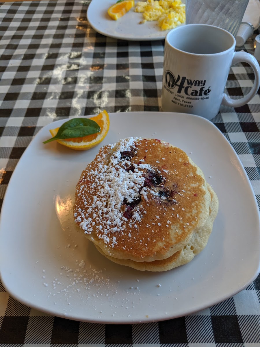 I have lived in East Texas for a long time and today was my first time here and man I can’t say enough how good the lemon blueberry pancakes are. All I used on them is butter I don’t even need syrup. I ordered 1 lemon blueberry pancake and an order of sausage. I will definitely be back to try some other yummy options.